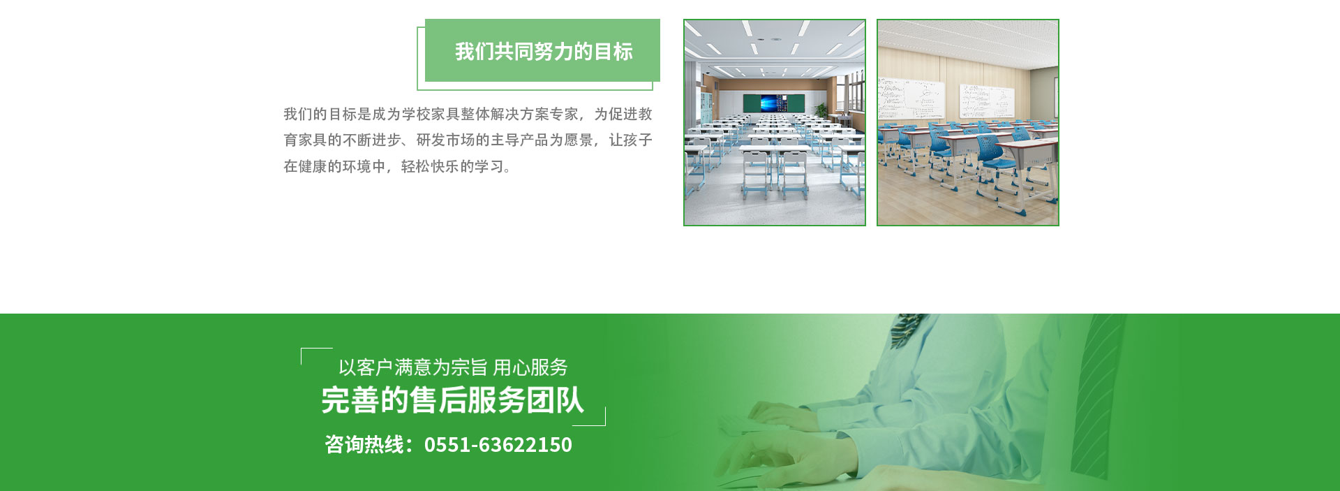 我們的目標是成為學校家具整體解決方案專家,為促進教育家具的不斷進步、研發市場的主導產品為愿景,讓孩子在健康的環境中,輕松快樂的學習